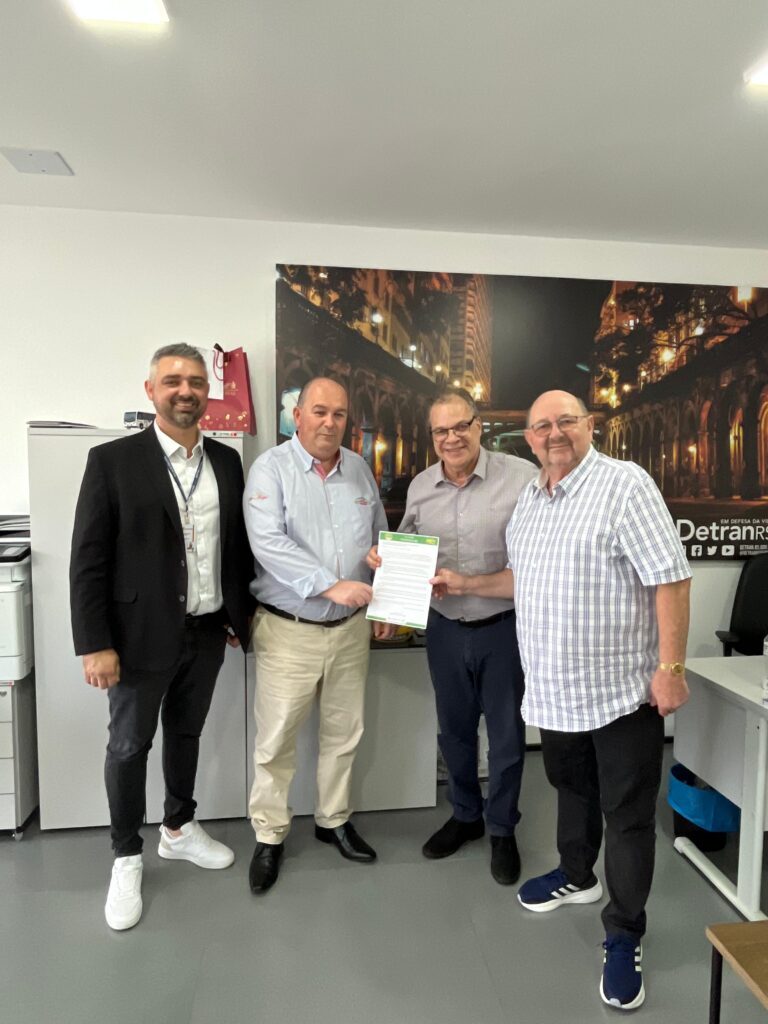 No Detran-RS, a comitiva esteve dialogando e entregando convite ao presidente do órgão, Edir Domeneghini.