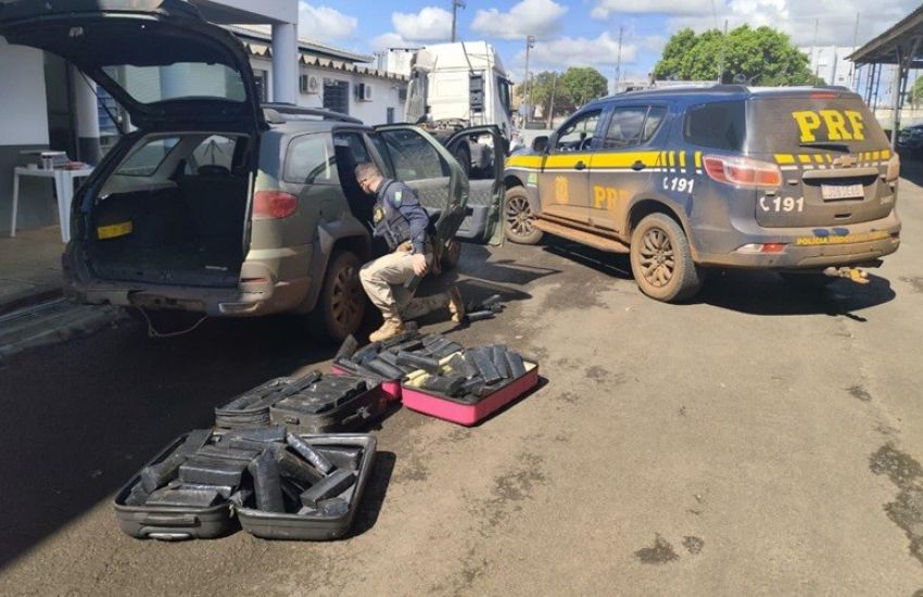 Na vistoria do veículo, os agentes encontraram diversos tabletes de maconha. O carro utilizava placas argentinas adulteradas e, conforme consulta, havia sido furtado em Cascavel (PR) neste ano.
